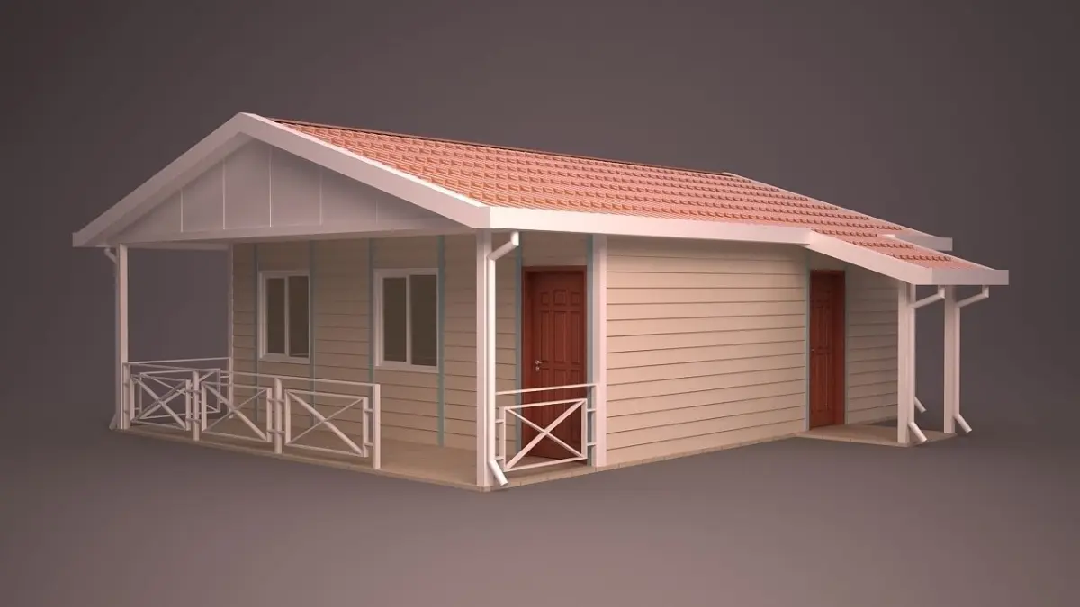 Used some textures; for a little bump and for ground and for roof. I used high resolution textures.