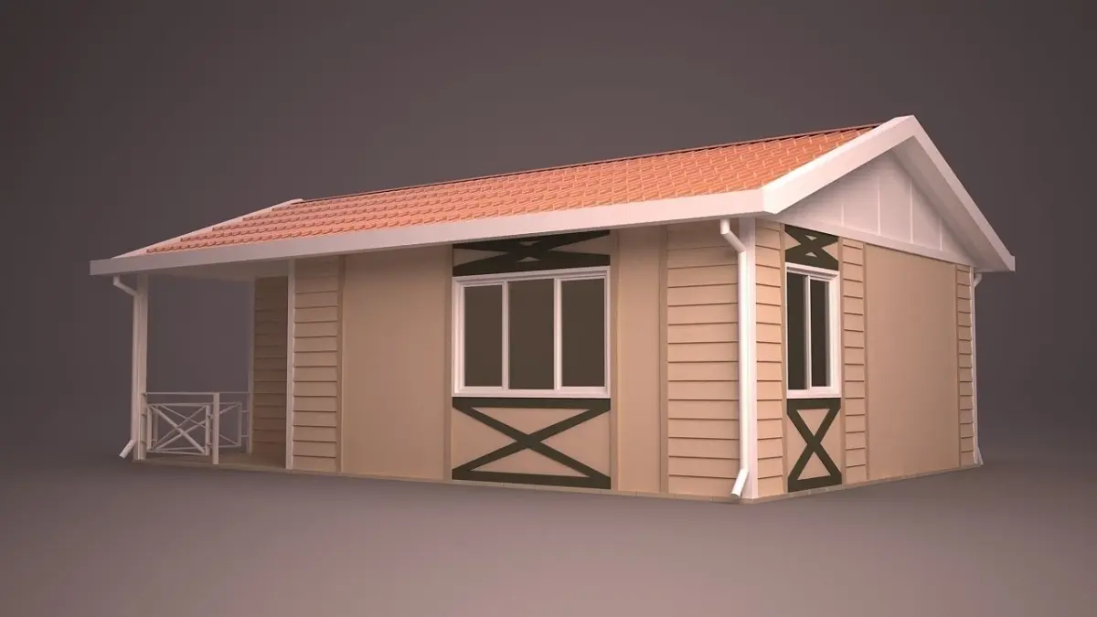 Used some textures; for a little bump and for ground and for roof. I used high resolution textures.