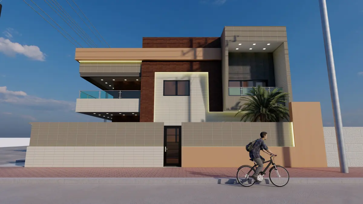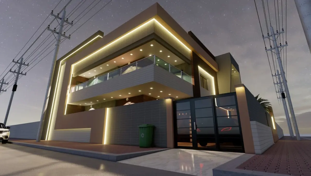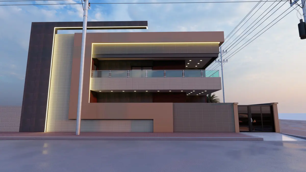 Home modern house on street Low-poly 3D model