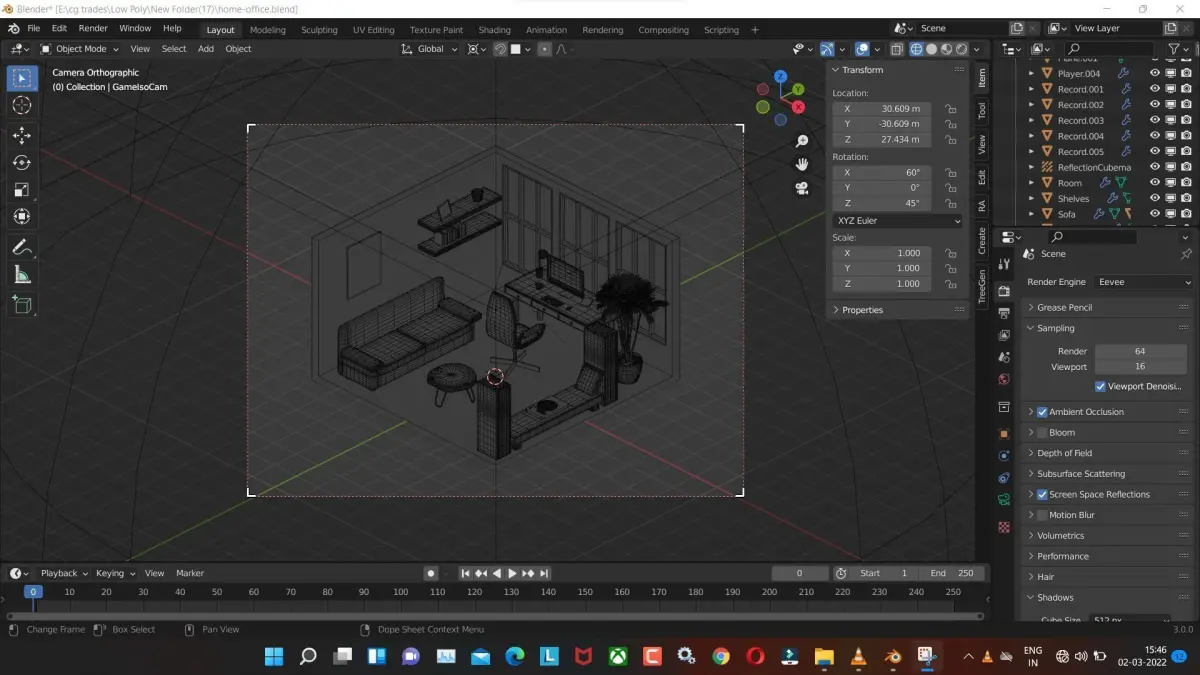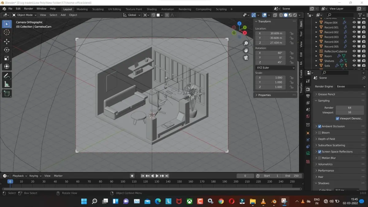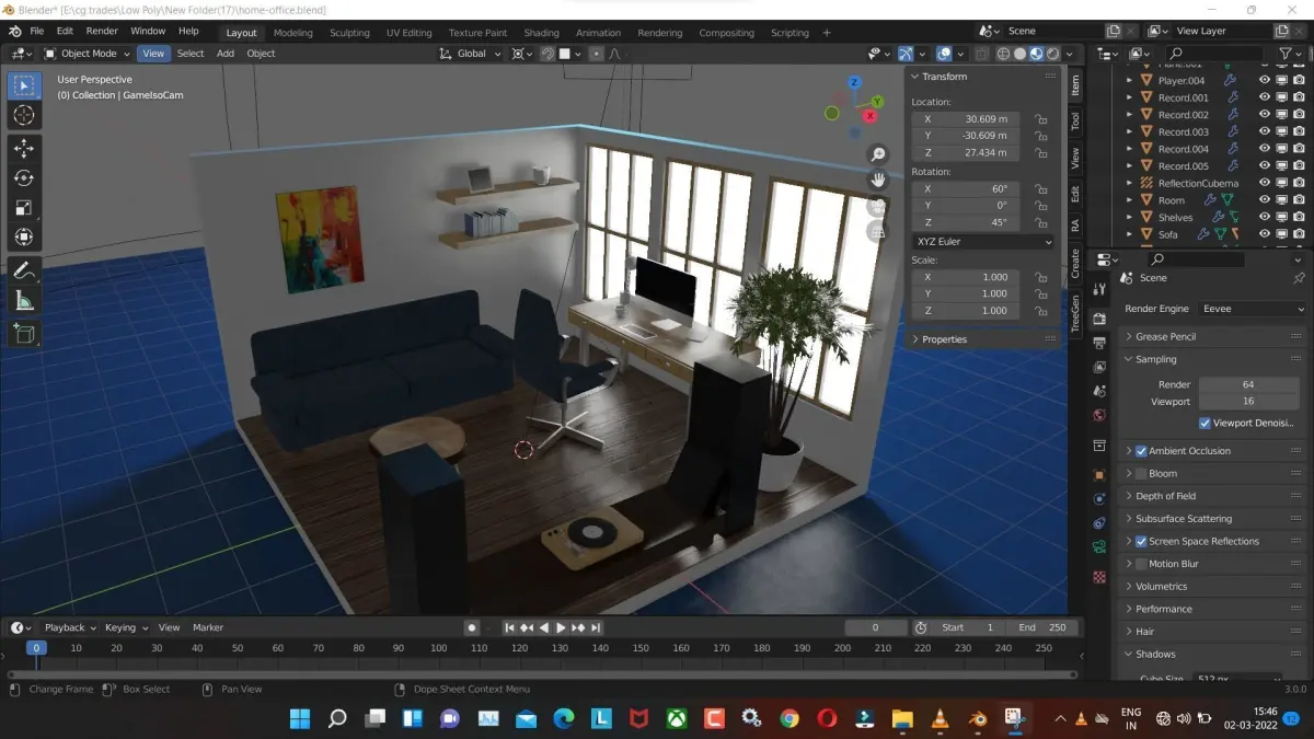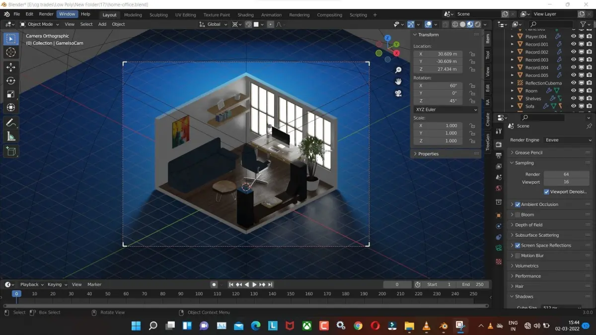 home-office low poly model render in blender