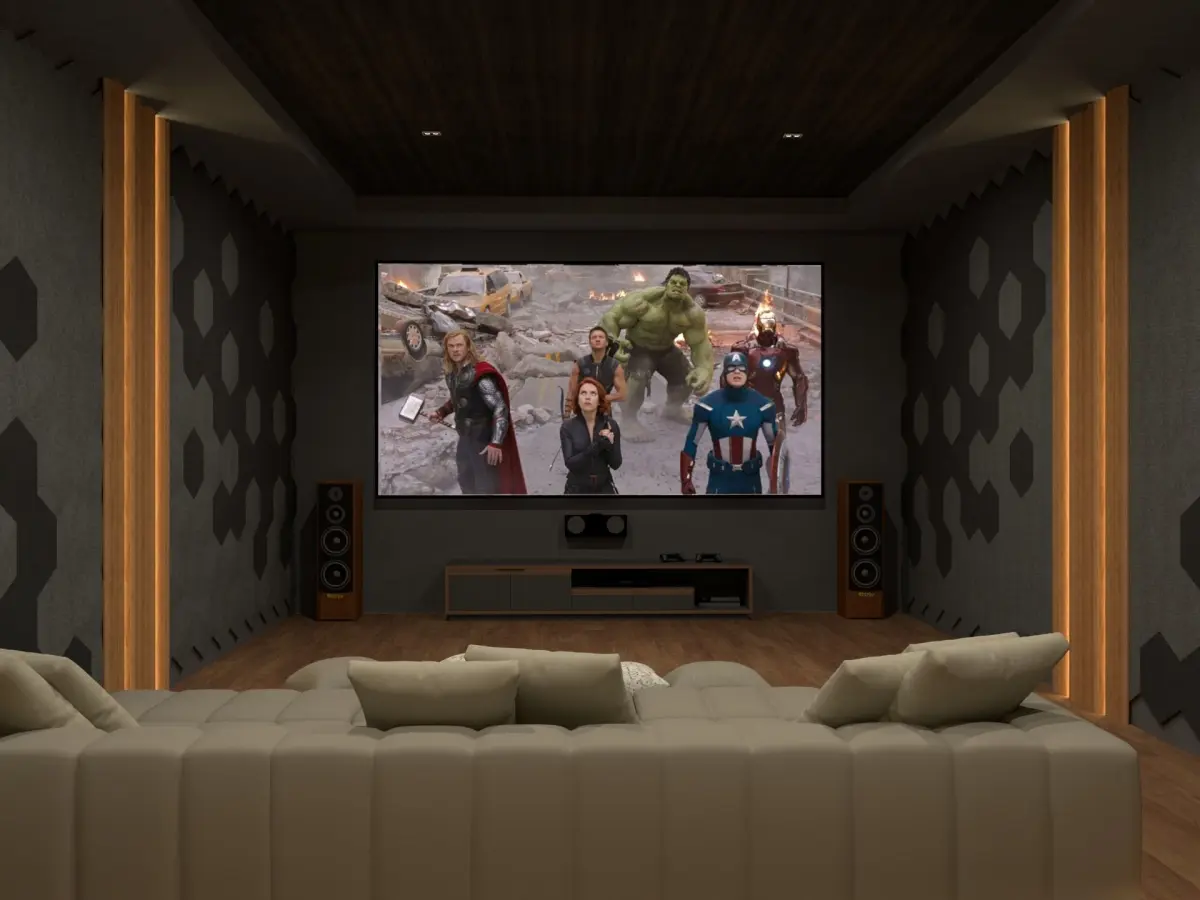 This home theatre has a 6.2.1 audio system, with ambient speakers and surround speakers with one subwoofer. All the materials used are high resolution.