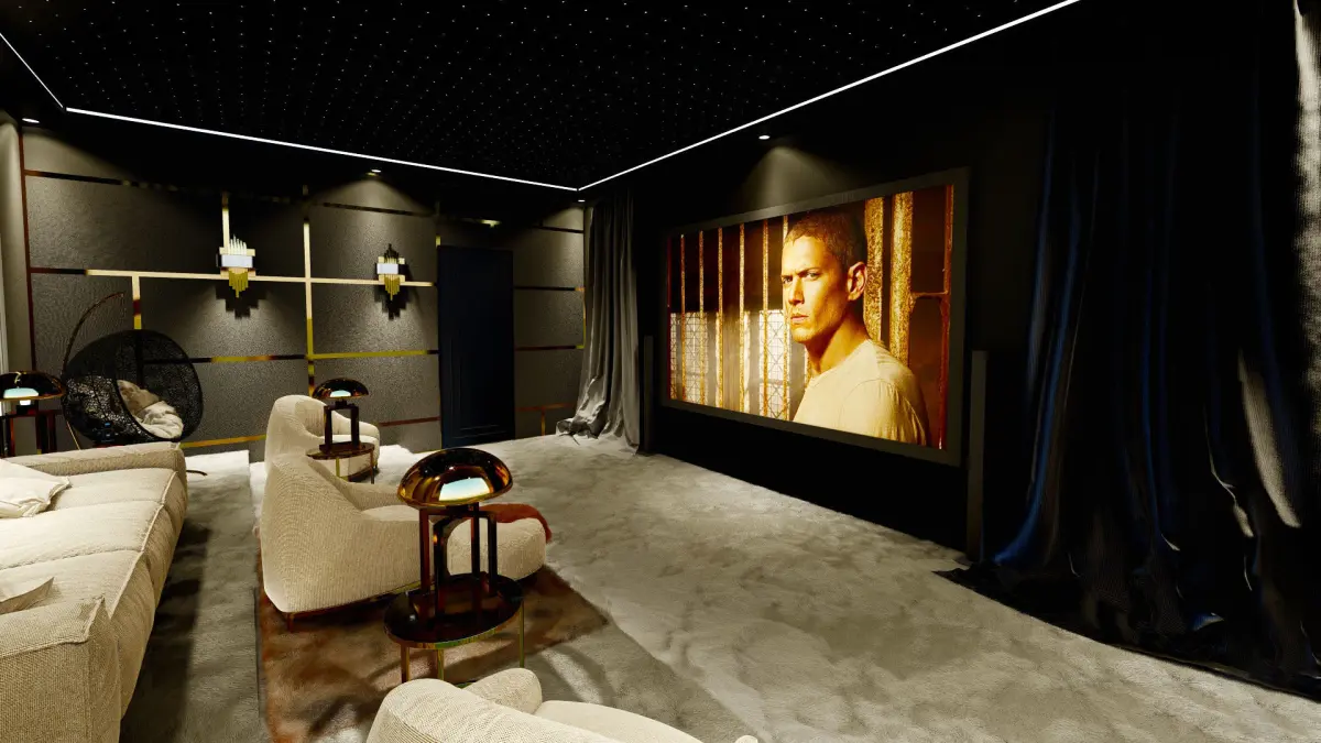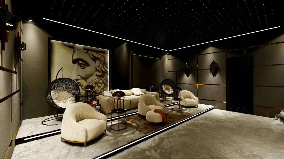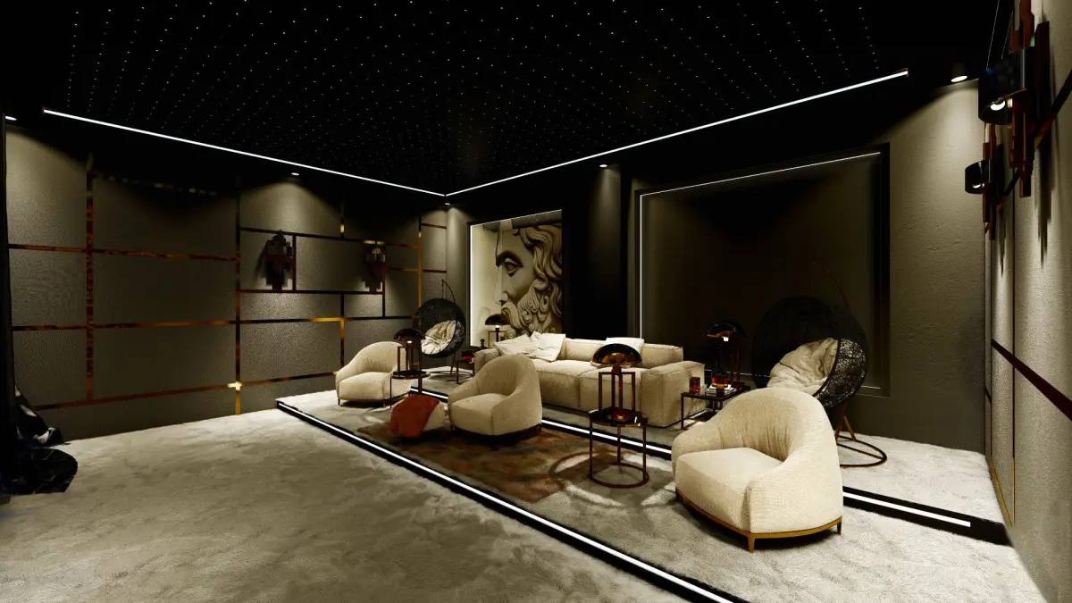 This cinema room is low polygon and can be used in any design. It can be used in luxury villa designs, in custom made areas. Cinema room is specially designed. 3Ds Max 2020 program was used in its design. The renderings are taken from Lumion 11.