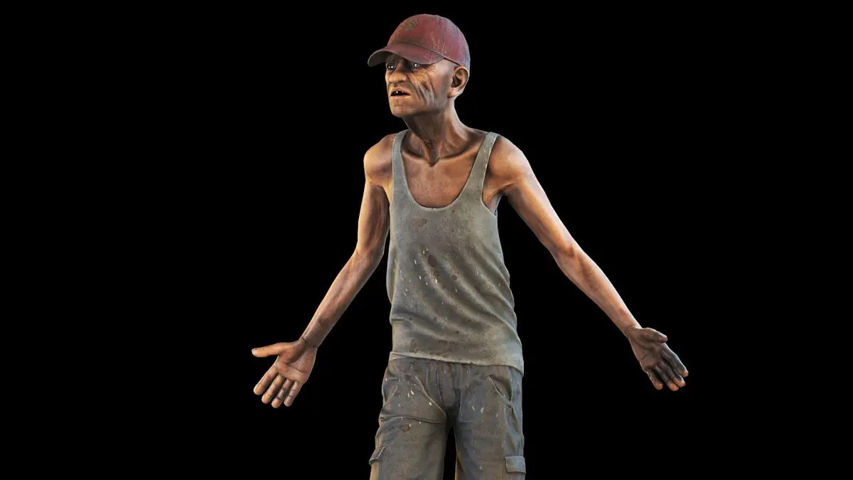 Hight quality 3d model of a homeless man.