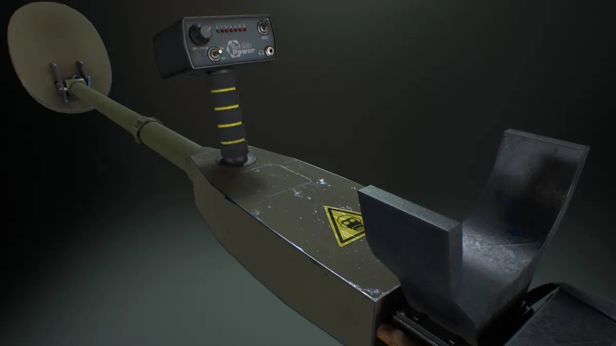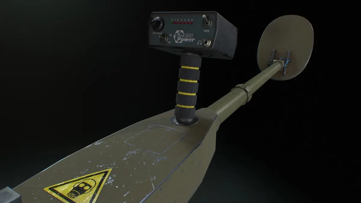 A metal detector can be used as an element of the environment or a device for searching for metal/mines.Renders are made in Marmoset Toolbag 4.