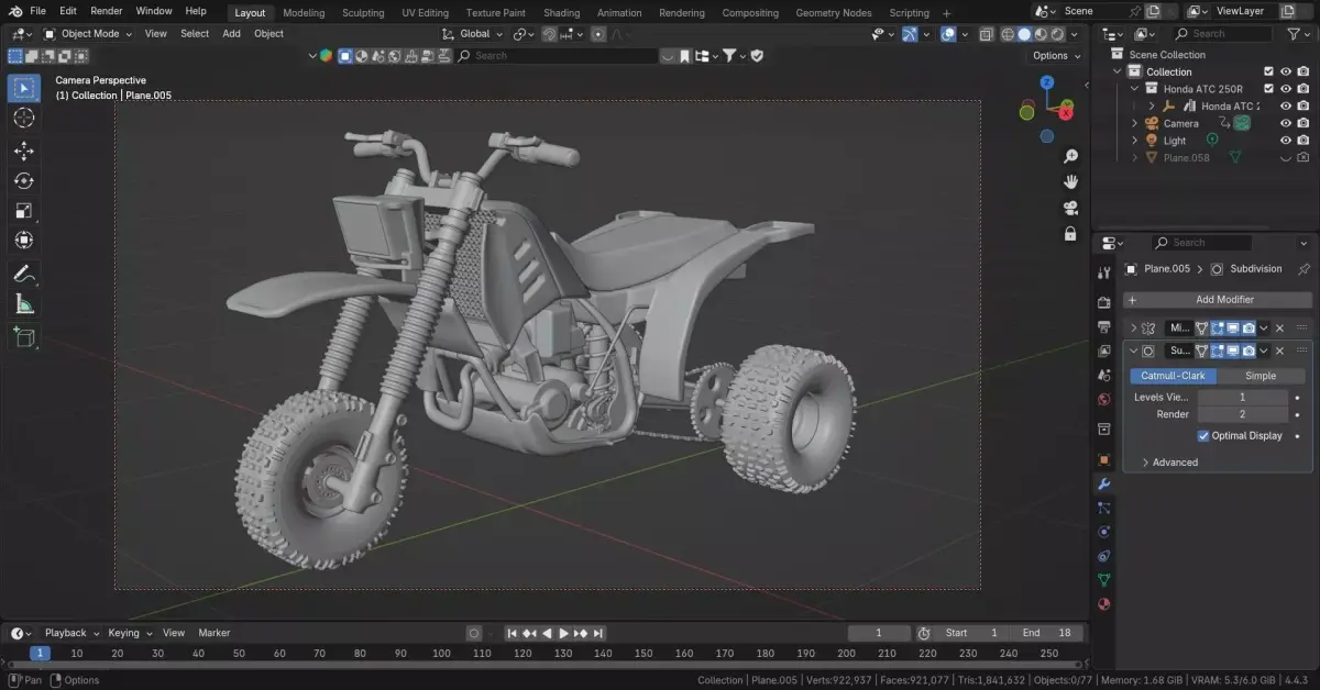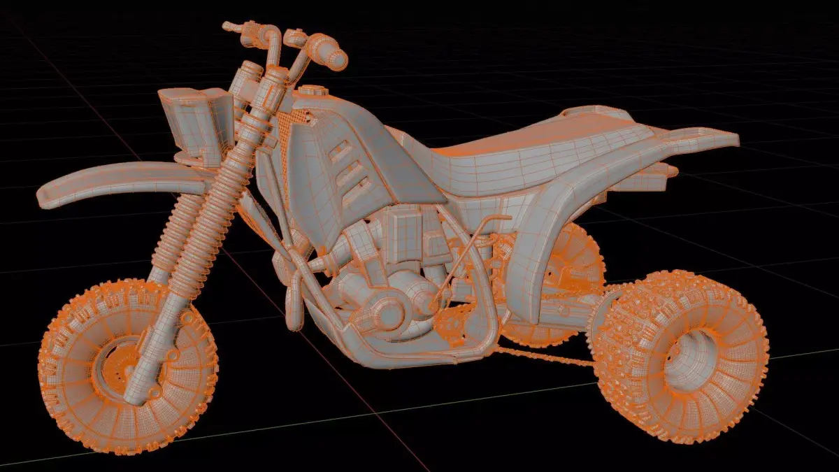 3D model of the 1986 Honda ATC 250R created in Blender. The mesh of the model is mainly quads.