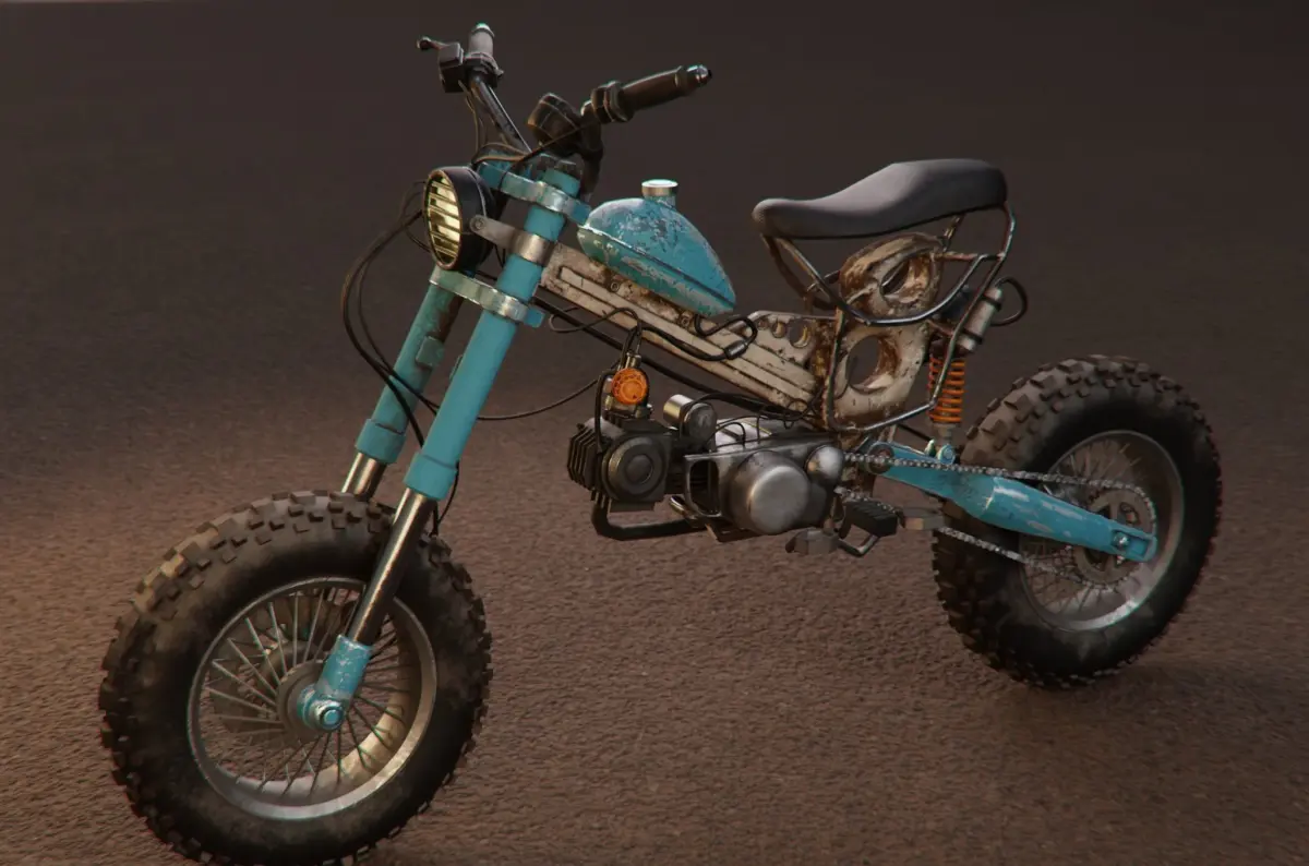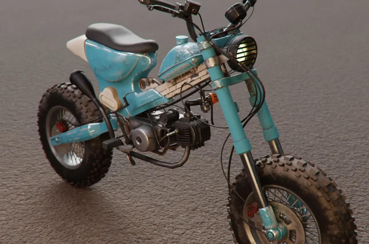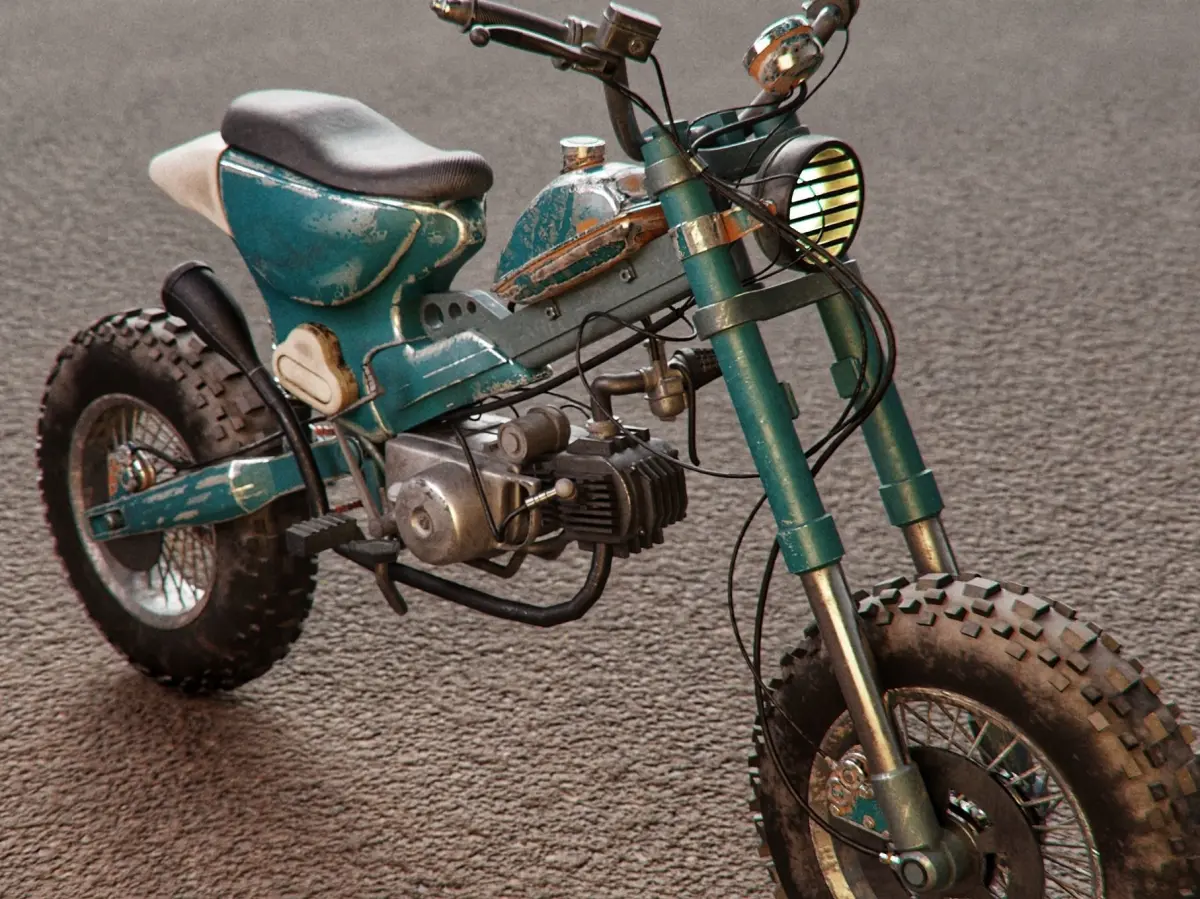 Honda Cub c70 Apocalypse Mod by kaharu 3D model of a survival vehicle based on Japanese Anime. Modeled in Blender 3.4 include compositing node and textured in Substance Painter.
