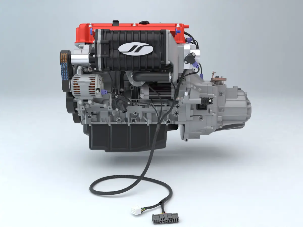 Honda K Series Engine with 6-speed transaxle and twin screw supercharger.