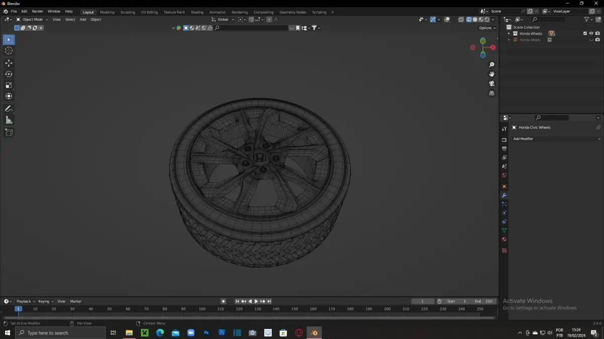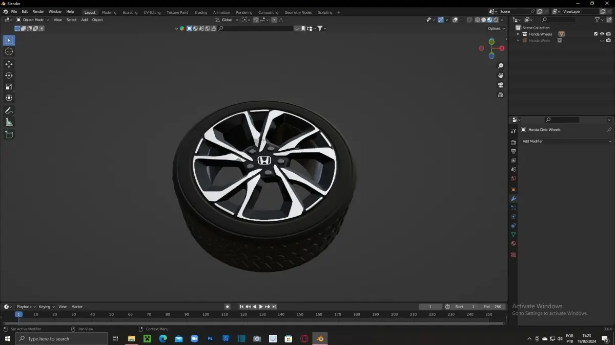 This Honda Weels was used in Civic G10. The tires have a simple and generic desgin. Its spareted in 4 objects: the tires, the logo, the screws and the wheel. The complete Honda Civic G10 is available to buy in my profile!