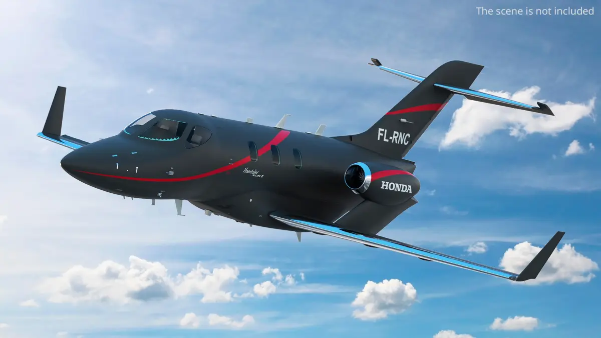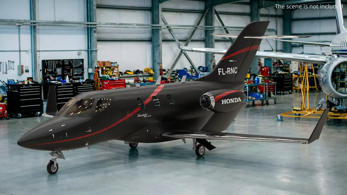 HondaJet Elite II Light Jet Aircraft Black Rigged is a 3d model of a sleek, modern business jet designed for efficiency and advanced aviation technology.