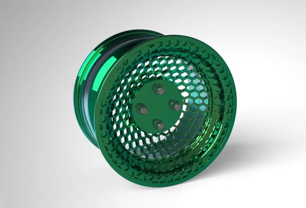 The front surface of this rim is designed by honeycomb structures, it's one of the best solid structures in the world, it's designed from real dimensions. The bolts are separate from the main body, you can remove them easily, it also has the bolt holes, you can put your favorite bolt on it.the circle in the center are completely flat, you can add your specific logo or letters easily on it and design it by yourselflet me know if you want to change the scale, I'll modify it for your size.