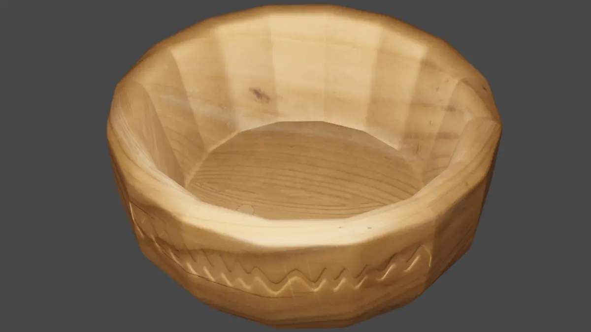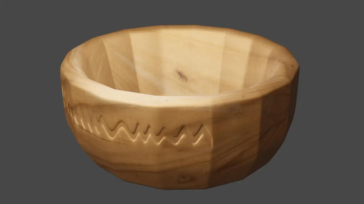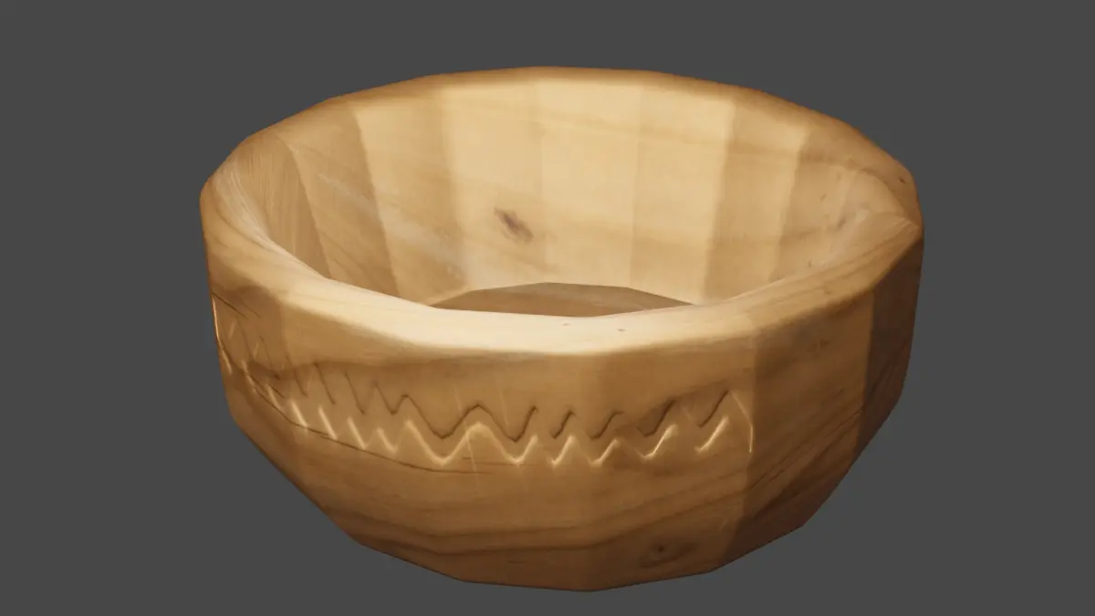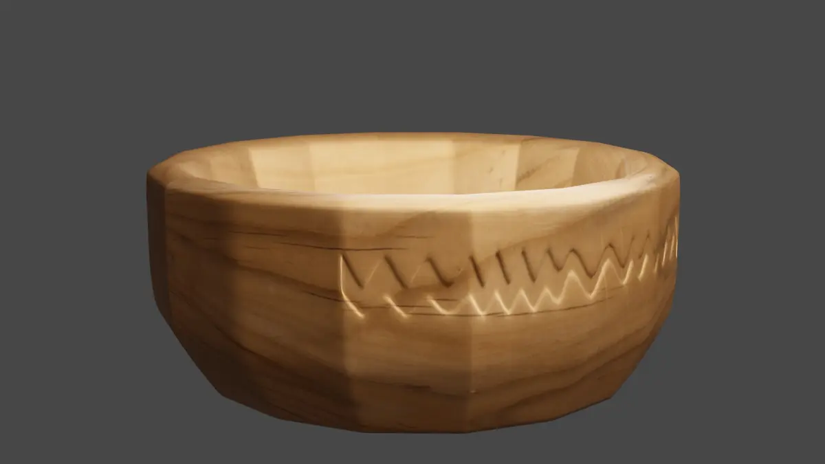 Nice topology as shown in preview images. Bowl was made with loop tools then applied subdivision surface level 2, not by modifying default object in Blender, decor shape was attached to bowl body manually. I did not use any other modifiers or plugins. Images textures were modified in GIMP. Make sure model looks realistic and light enough for animation scene. Render engine: Eevee