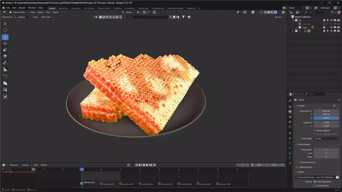High-quality 3D model of Honeycomb featuring food item called Honeycomb for intorior or extorior decoration. The download includes the native Blender file with full material and lighting setup, as well as OBJ and FBX exports for compatibility with other software. Both high-poly and optimized low-poly meshes are provided, along with pbr textures (Color, Normal, Roughness, Displacement, and Subsurface Scattering). All assets are UV-mapped and ready for use in rendering, animation, or real-time projects.