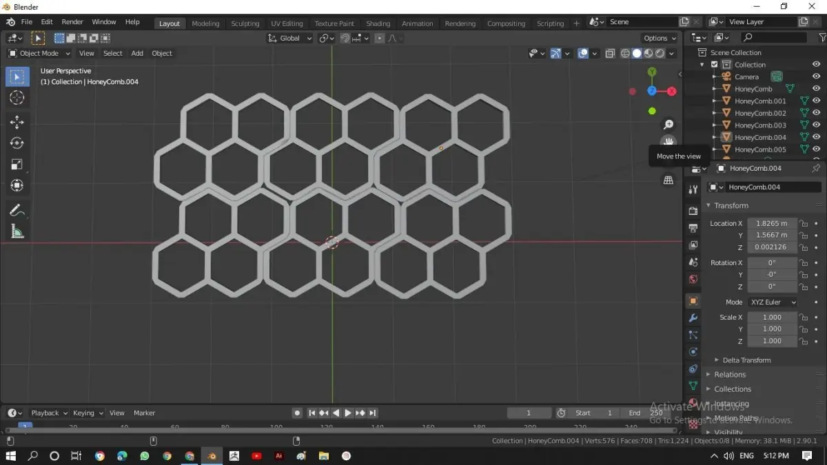 honeycomb 3d model vertices=576 edges=1,320 triangles=1,224 faces=704 all polys=1,928.