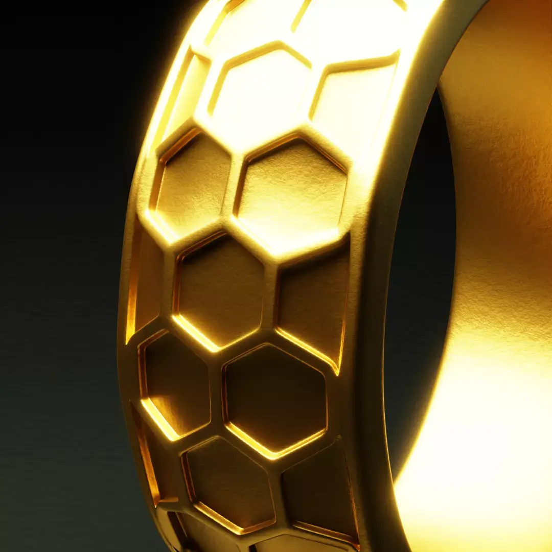 Honeycomb Gold Ring - Geometric 3D Print Jewelry ModelIntroducing the Honeycomb Gold Ring – a premium 3D jewelry model designed for professionals and enthusiasts alike.This luxurious ring blends modern geometric artistry with a classic gold finish, making it an exceptional choice for 3D printing, rendering, or jewelry design projects. Modeled in Blender v4.2.2 and rendered with the Cycles engine, it delivers unmatched detail and precision. Perfect for those seeking a high-quality asset that is both visually striking and production-ready.