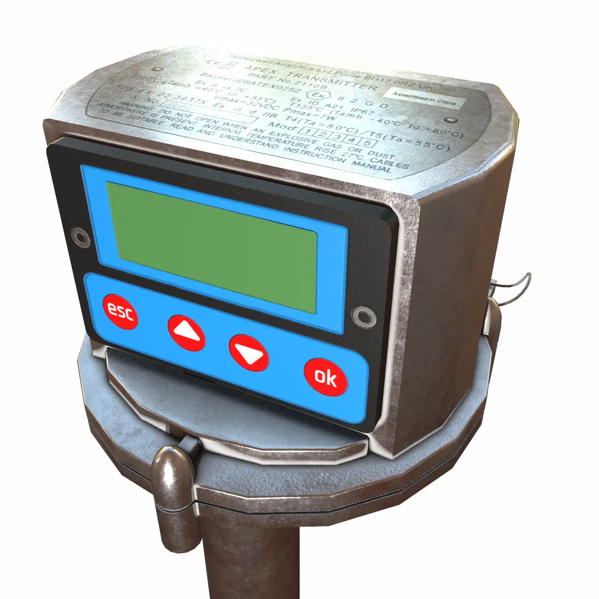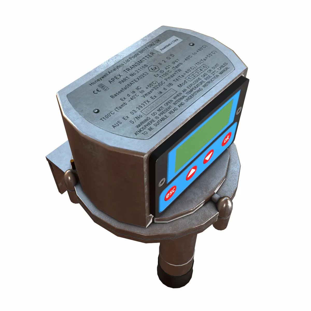 Why This Model?Authentic & Detailed – Faithfully modeled after the real Honeywell Apex transmitterLightweight & Game-Ready – Perfect for mobile, VR/AR, and real-time renderingAll Major Formats Included – Maya, Blender, FBX, OBJ, STLClean Mesh & UVs – Ready for animation, lighting, and material customizationIdeal for Safety & Industrial Projects – Use in oil & gas, chemical plants, and factory setups