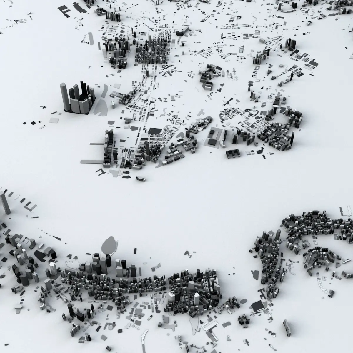 These models are designed to show and present the city/area in the title in a minimalistic concept. They show a close to exact streets and buildings alignments and building heights (excluding parts where there is no or insufficient data to build 3d geometry) therefore they can be used for many purposes but they are not designed to build ie. high precision urbanscape.