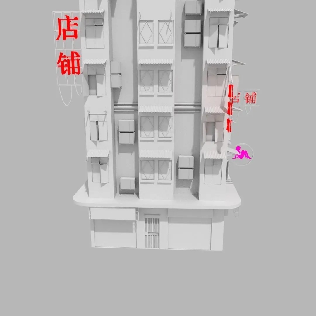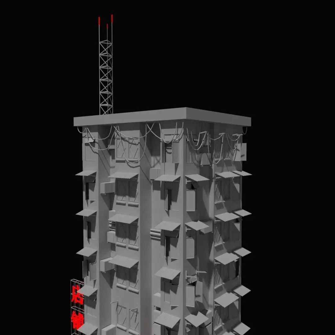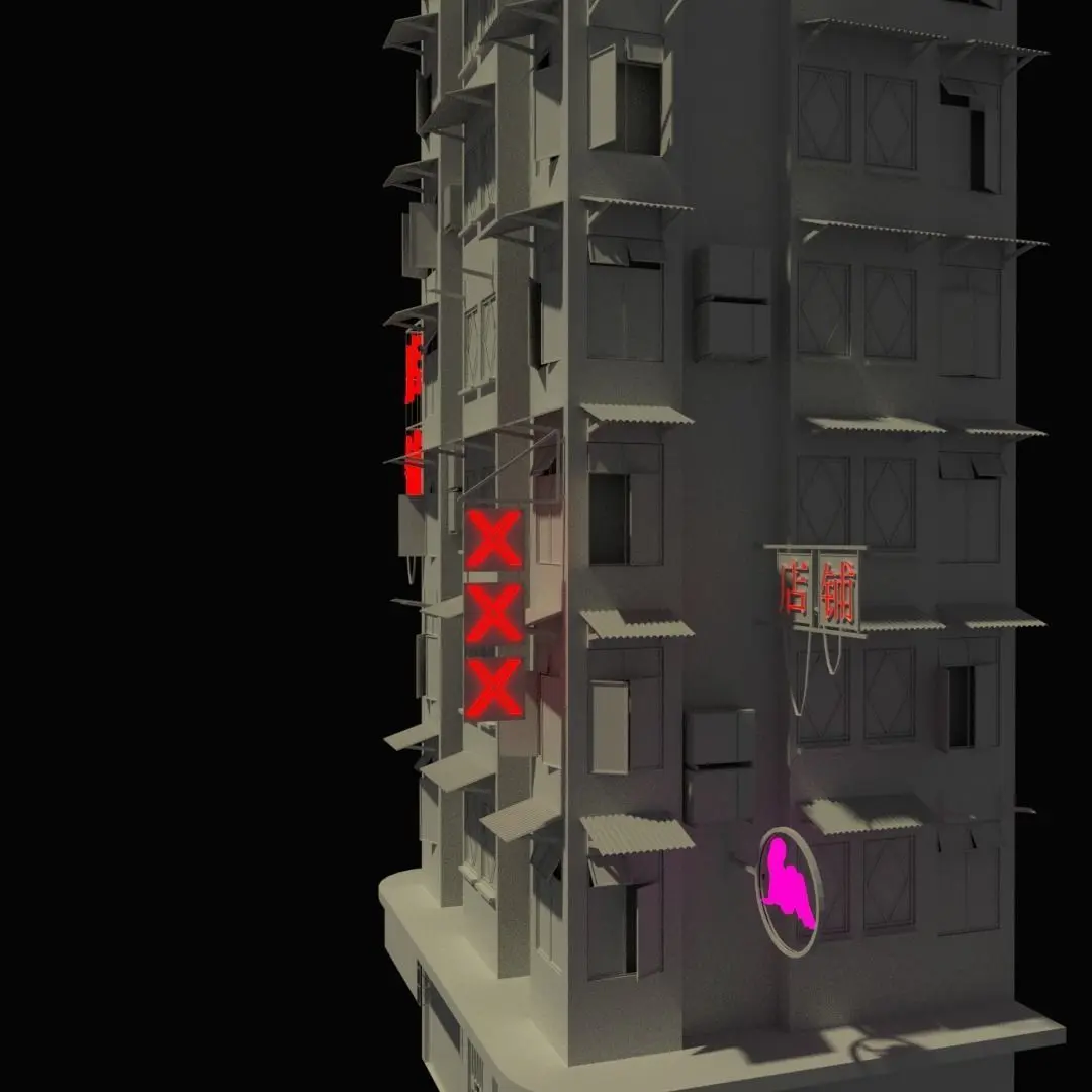 Hong Kong Old Style 3D Building It has 8 floors, comes with 4 posters and a communication tower. Made in blender 3d, can be used for video games (unity, unreal engine, etc.) .Fbx .3ds .stl .blend .obj files Low price
