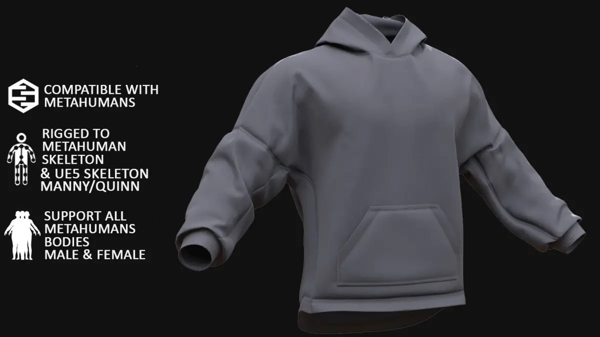 - Realistic 3D model of Hoodie 123 - All MH Bodies & UE5 Skeletons - Rigged