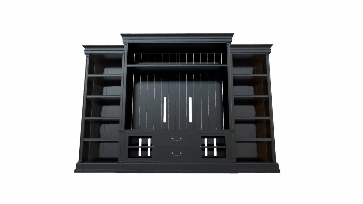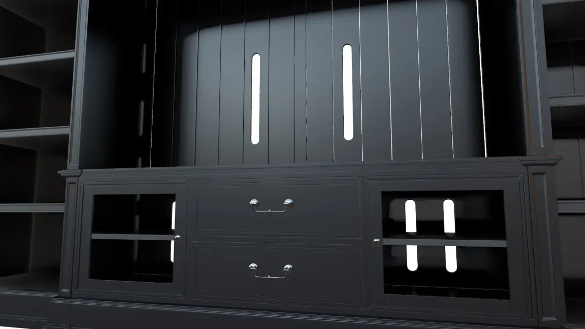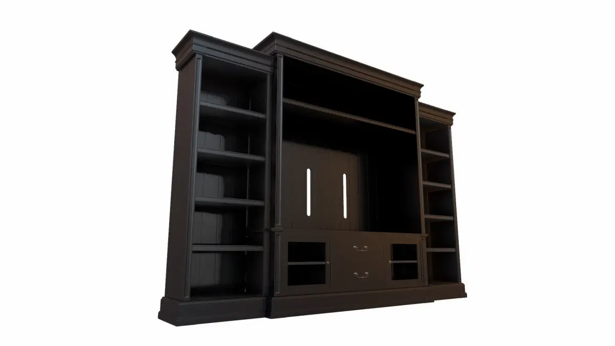 Photorealistic 3d model of Hooker Furniture entertainment centre with wood and glass doors, for archviz or interior design renders.Dimensions: Metric W: 2.85 D: 0.448 H: 2File formats: fbx, obj, stl, blendIntended for use with materials.