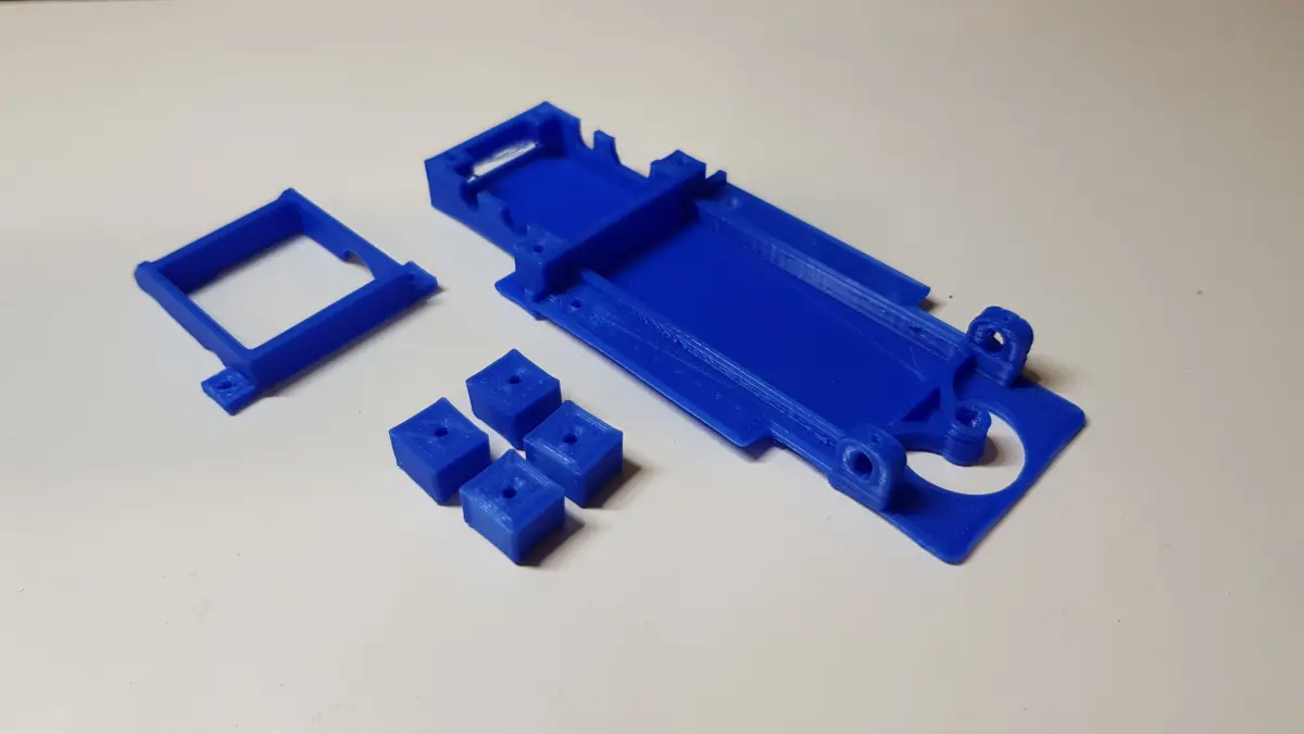 The chassis includes mounting blocks which can be glued to the Hoonicorn body.