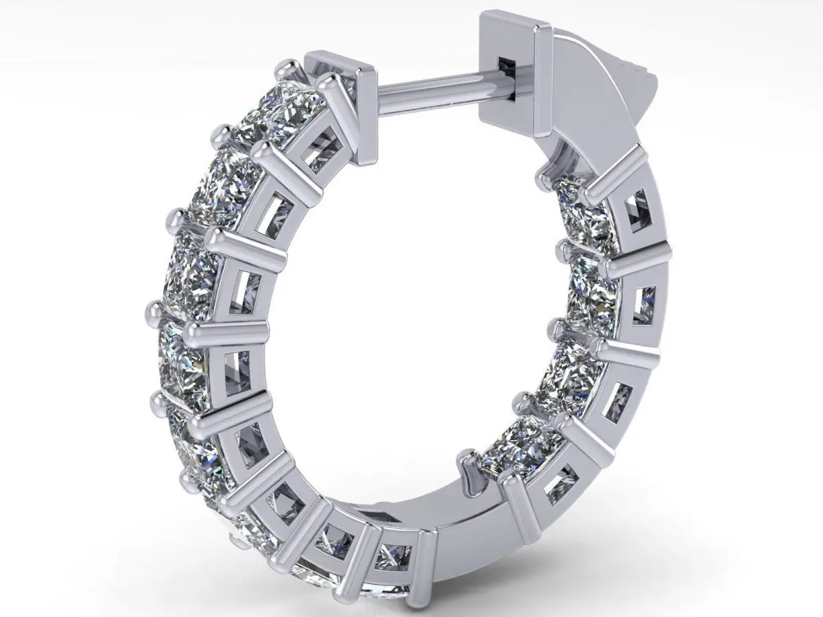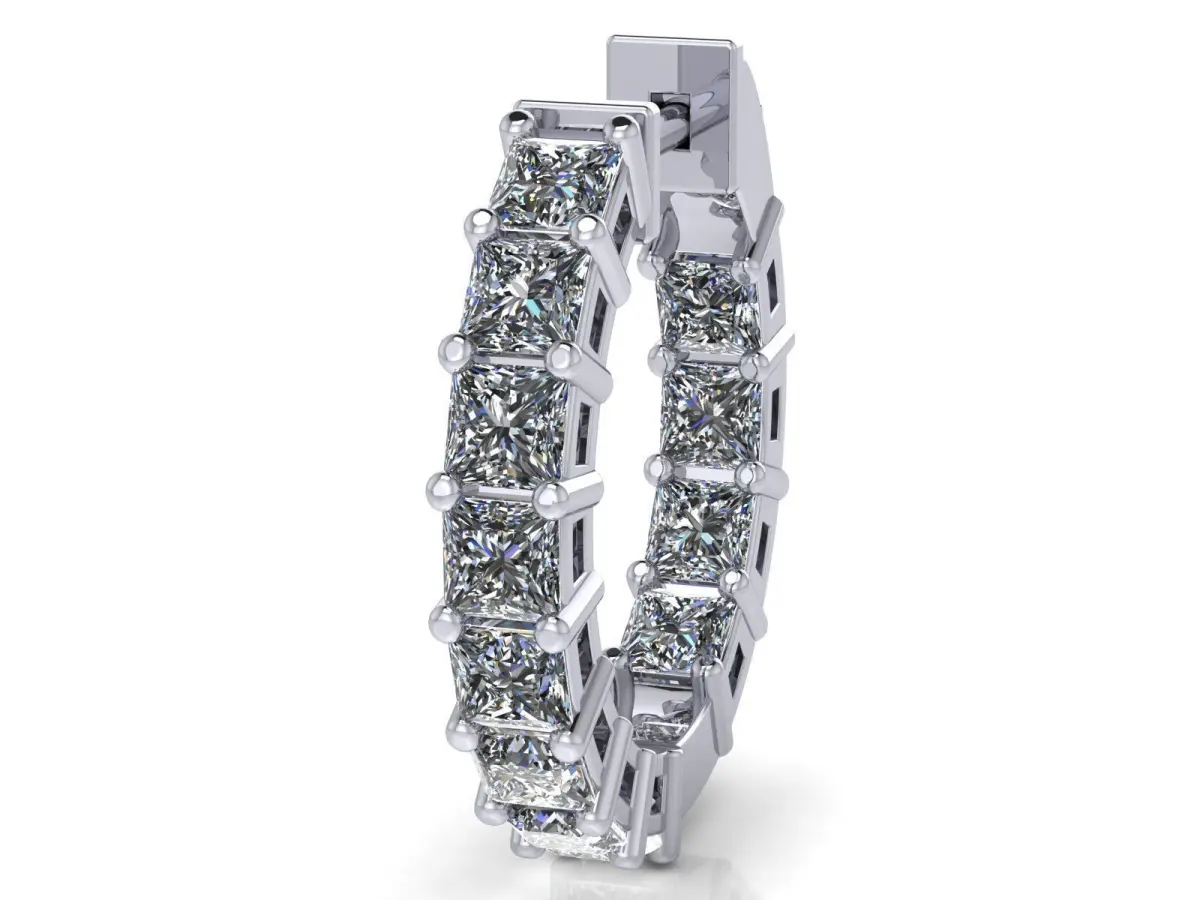Printable and editable CAD 3D Models for various hoop and stone-size princess-cut hoop earrings, each one designed with various circumferences. This product contains 10 different model designs.