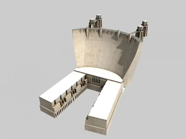 Divided in 4 elements: dam, base 1, base 2, towers.