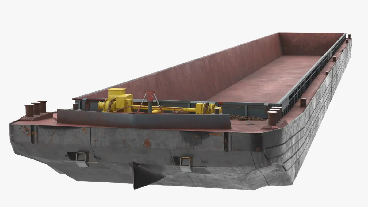 Hopper Barge is a three-dimensional model of hopper barge, that is a type of vessel designed for transporting and unloading bulk materials such as sand, gravel, and dredged sediment.
