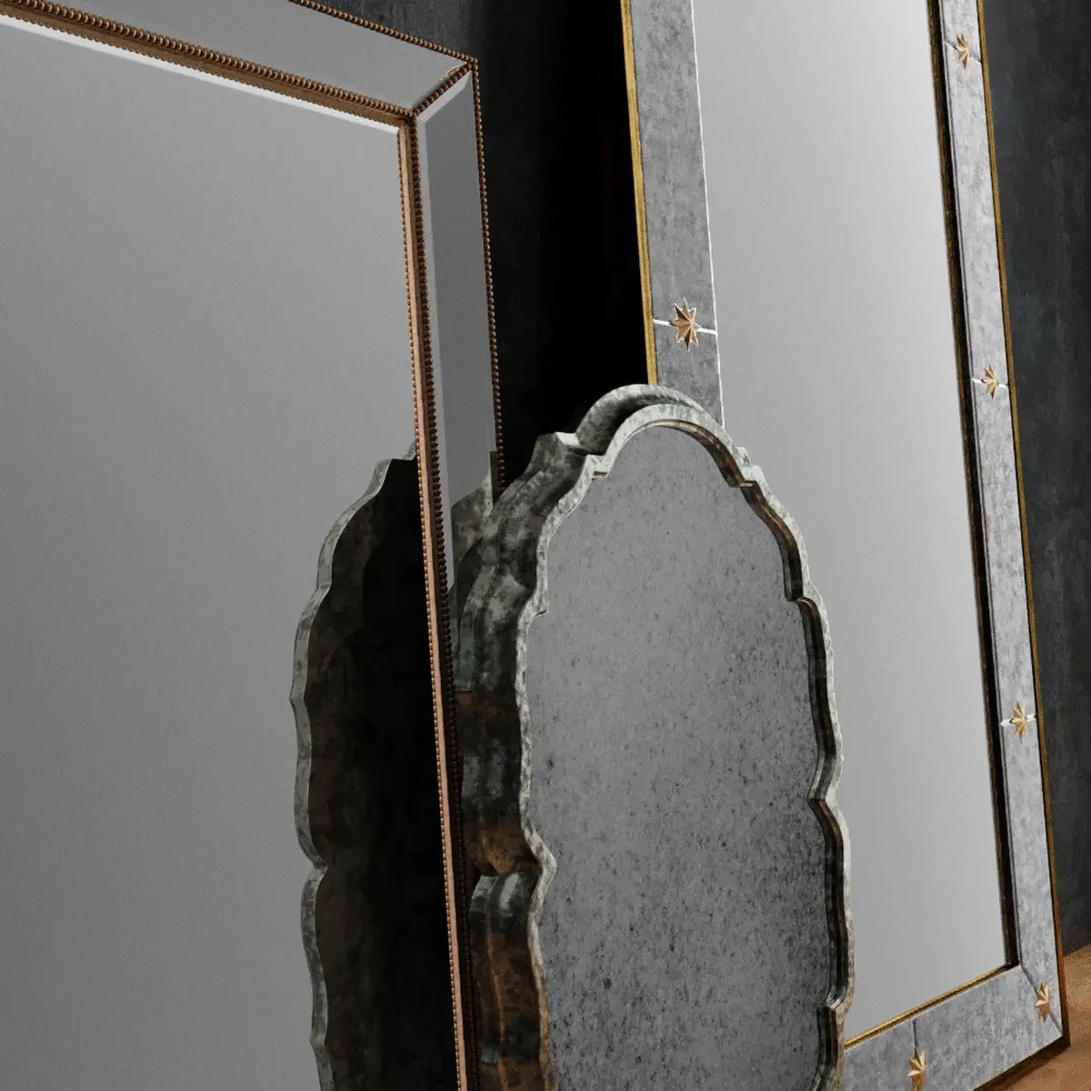 Mirror_Scroll-Motif - Dimensions : 43W x 1D x 55TMirror_Sunburst_Acrylic - Dimensions : 39Dia. x 1DMirror_Oval_Beaded - Dimensions : 36W x 4.5D x 48TAldina_Golden - Dimensions : 43W x 79TMirror_Centerpoint_Silver_Tone - Dimensions : 28W x 2D x 40TMirror_Star_Knob - Dimensions : 27W x 2.5D x 54T