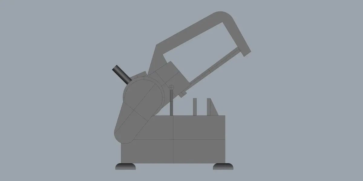 Horizontal Band Saw Machine used in the process of ship construction. Cut metal tube or plate. Scale 1:1