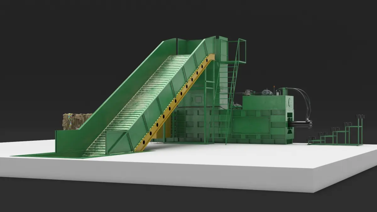 Horizontal Hydraulic Baler Machine Green is a three-dimensional model of industrial waste press baling machine used for waste pressed briquette making.