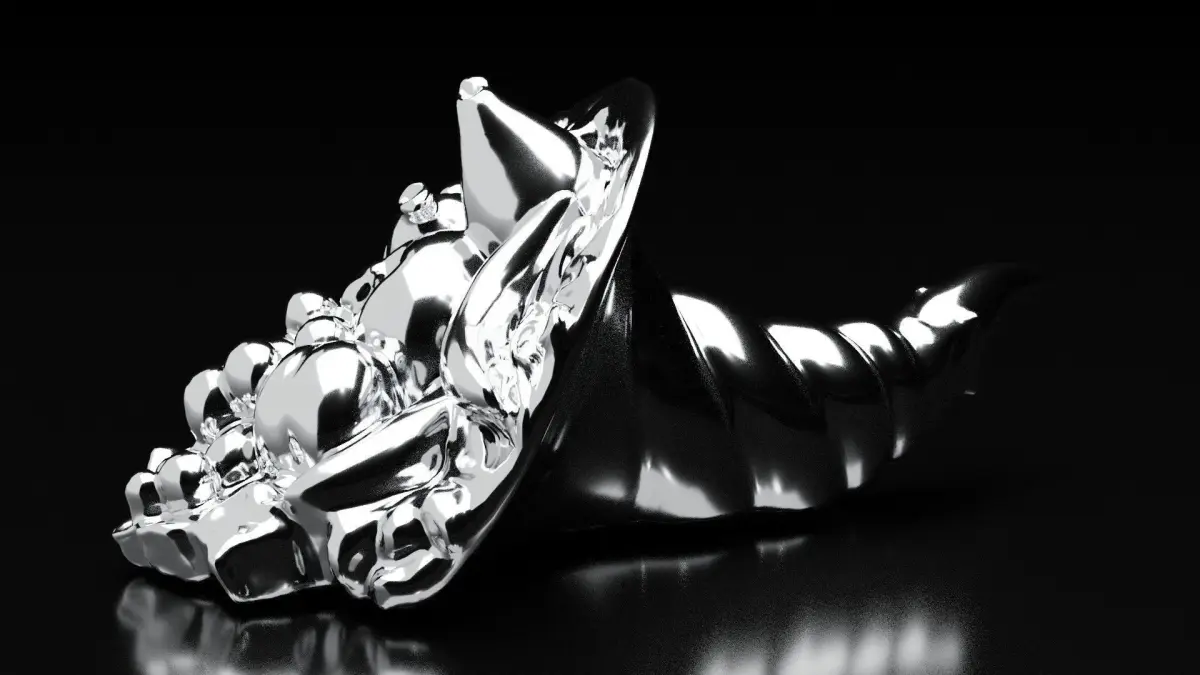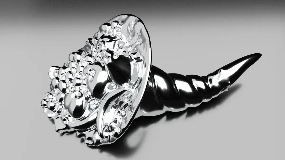 This is a photorealistic lowpoly 3D model of a cornucopia.