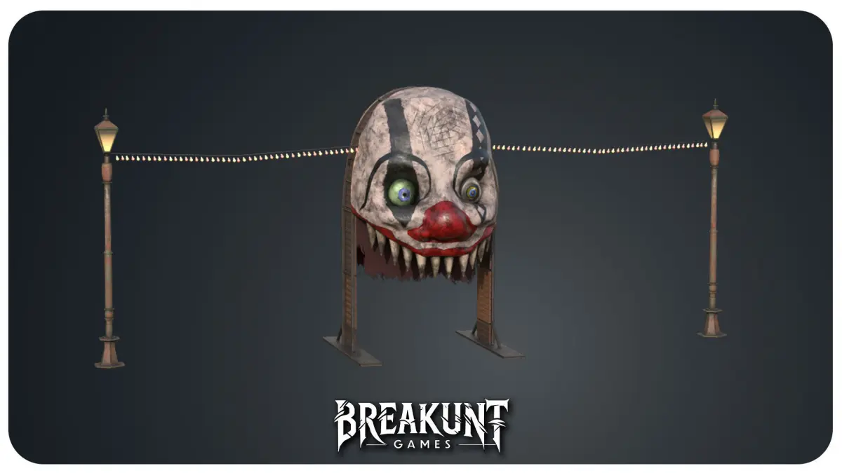 Horror Circus Entrance Clown Head is a game-ready 3D prop designed for realistic horror environments. This high-quality model includes a giant creepy clown head, old rusty lampposts, and hanging carnival lights, making it ideal for haunted circus levels, horror games, or Halloween environments.