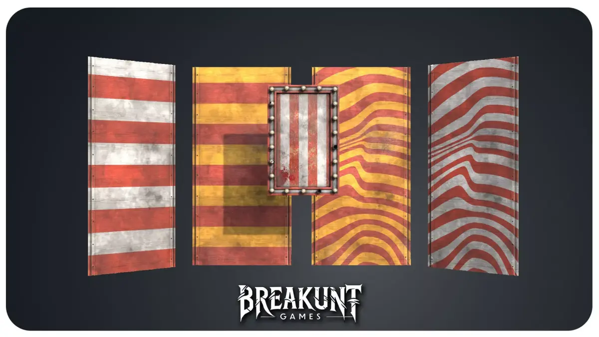 Create a gritty Horror Circus atmosphere with this modular wall panel set designed for outdoor carnival and dark funfair scenes. The pack includes a distressed wooden circus panel with bold striped and wavy patterns, plus a framed marquee panel featuring bulb sockets for a classic showfront look. It comes with 4 material variants for quick look variations, ranging from cleaner surfaces to more worn / grunge finishes. You also get 2 pattern designs, including stripes and a wavy pattern, and 2 color options with Yellow and White versions. This asset is ideal as a backdrop, level boundary, or set dressing element in horror games and haunted amusement park environments. Perfect for UE5 / Unreal Engine, Unity, VR scenes, cinematic renders, and any creepy carnival level.