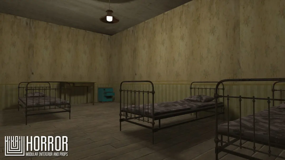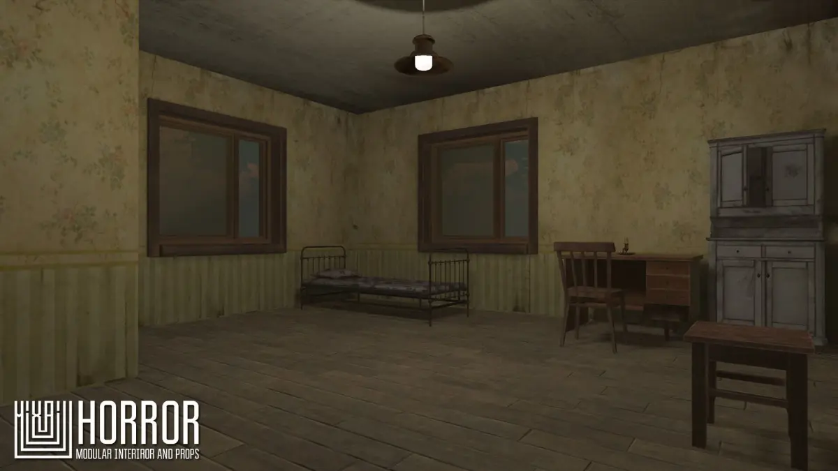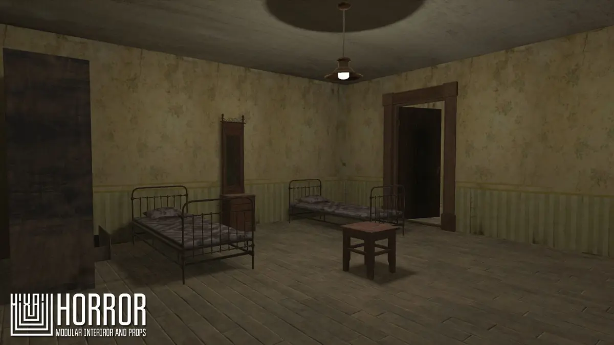 Horror is an old room filled with an eerie style with furniture and elements of the interior, which is perfect for creating games and commercials in the style of horror. Modular interior, all doors and drawers open. Doors have three kinds of texture.