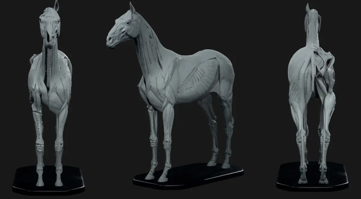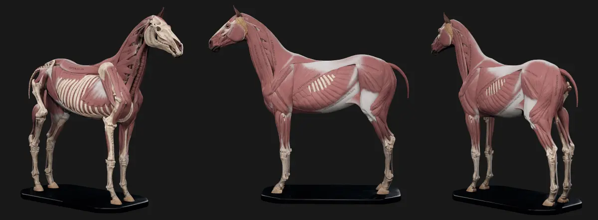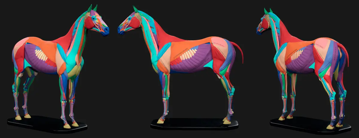 3D Horse Anatomy Kit represents accurate landmarks with all muscles and bones labled.