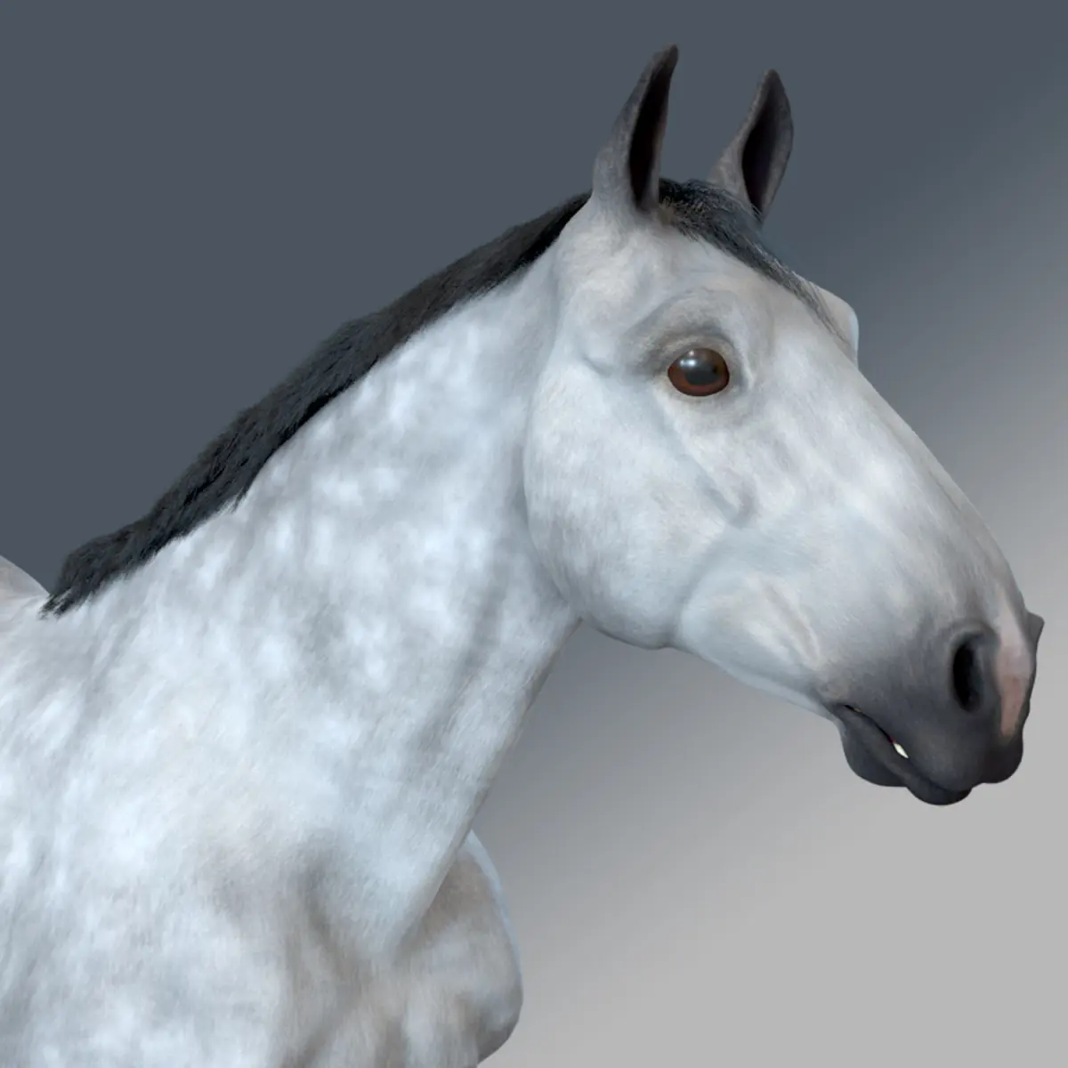 Production ready Horse model, with high resolution texturesand fur created with Maya Xgen interactive groom. Ready to render with Arnold render for Maya (MtoA).