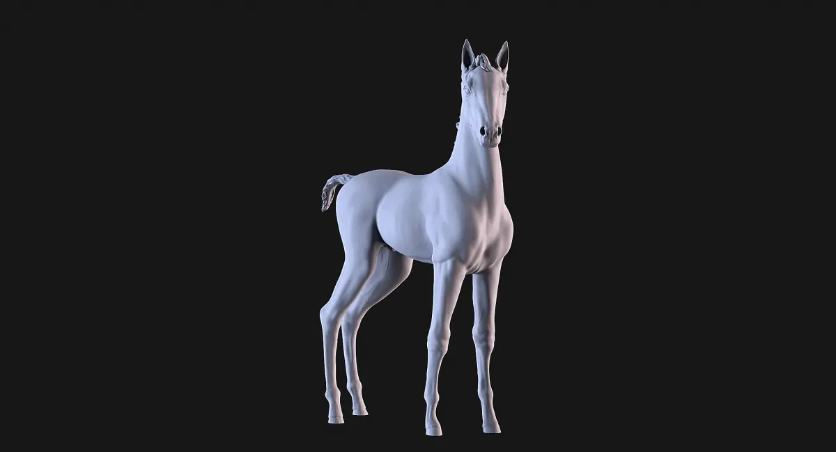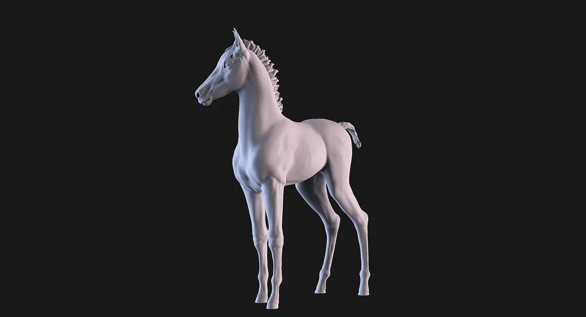 This high-quality foal sculpture captures the delicate charm and youthful energy of a young horse, meticulously sculpted in ZBrush 2024.
