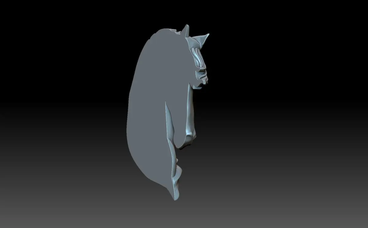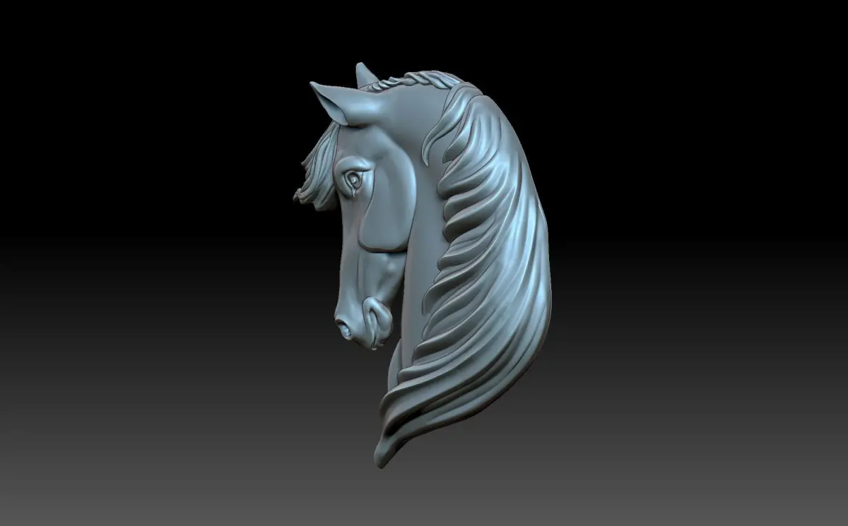 3d model of a horse's head with a mane.This is a bas-relief, a 3d model for a cnc machine and a 3d printer. The model can be used for other tasks as well!