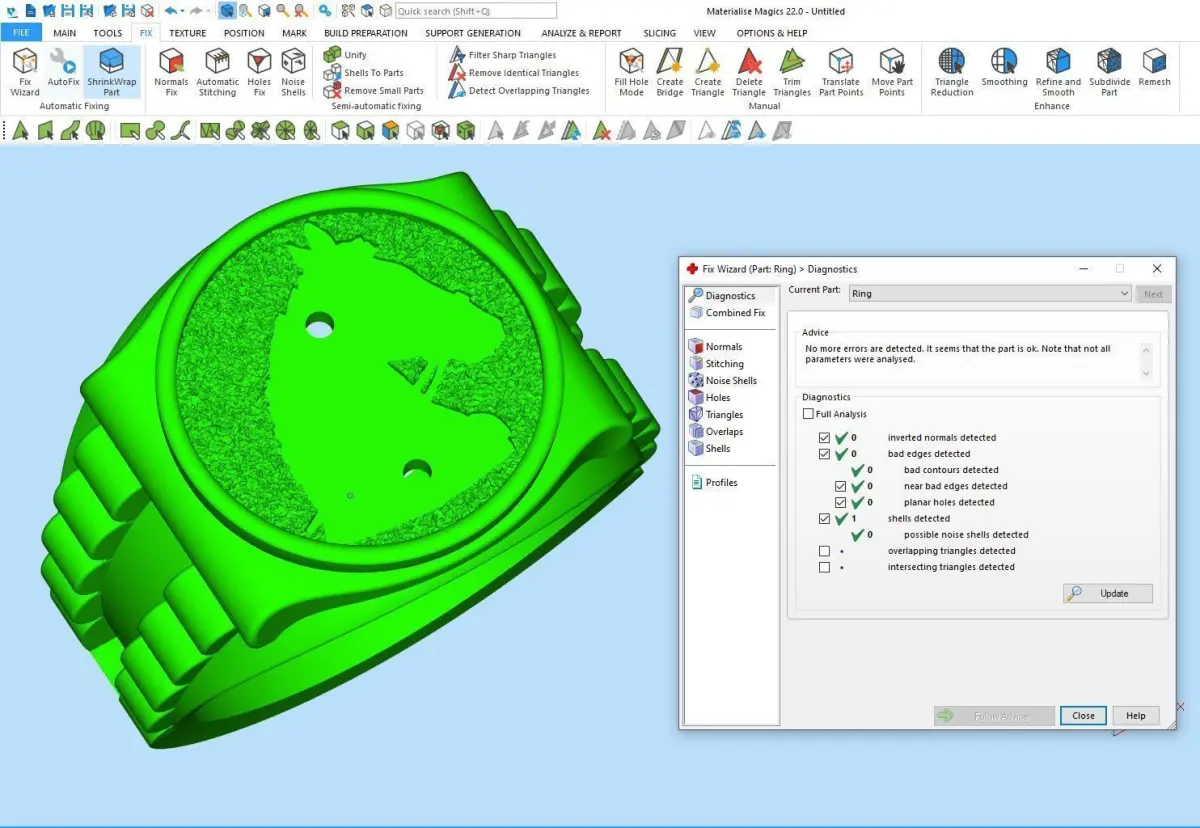All bugs are checked and fixed. STL file is healed and ready to prototype.