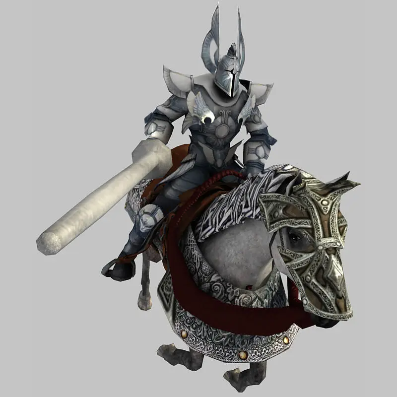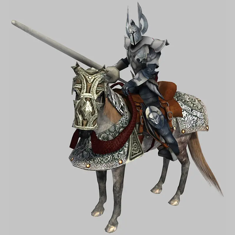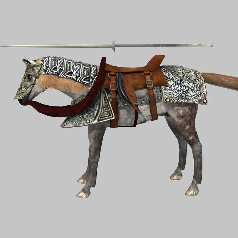 This horse in armor addition to the character of white and dark knight! Includes spear.