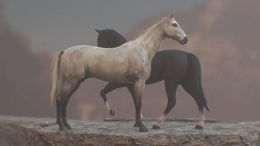 Horse with three different coats; Chestnut, Black and Grey. Rigged, Animated and Textured (4557 faces, 5458 Verts)