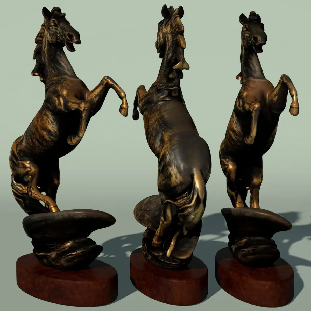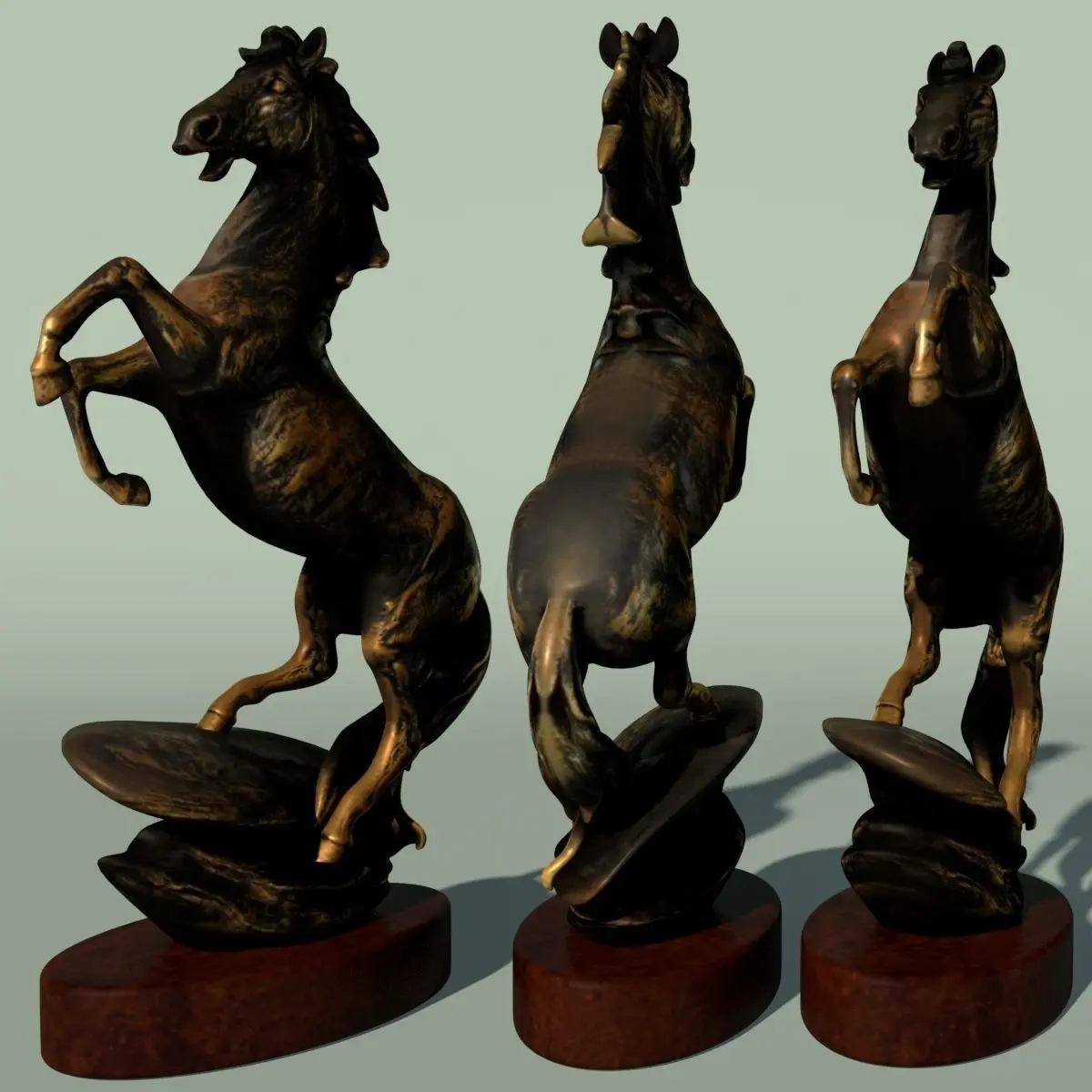 This is a horse statuette 3d model.Original created with Autodesk Maya 2015.Final images are rendered with Mental Ray 3.12.1.18 and Cycles (Blender).