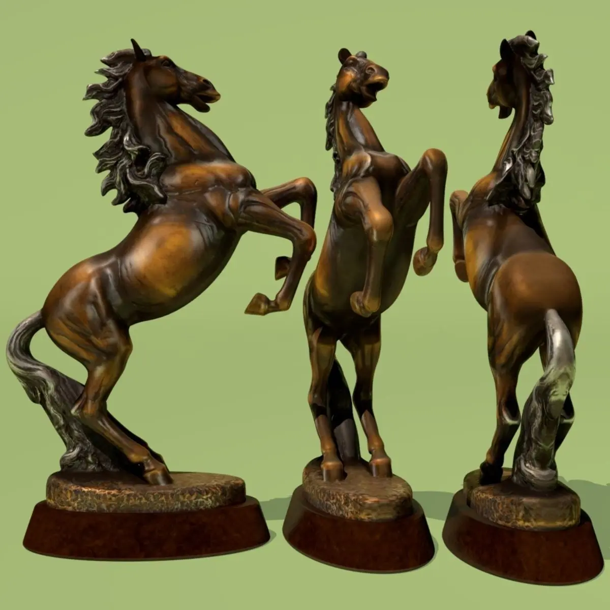 This is a horse statuette 3d model.Original created with Autodesk Maya 2015.Final images are rendered with Mental Ray 3.12.1.18 and Cycles (Blender).
