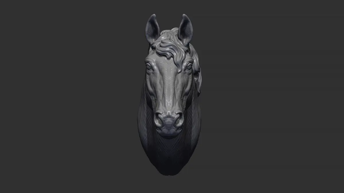 600K STL, OBJ triangulated mesh, Horse bust on low base marged