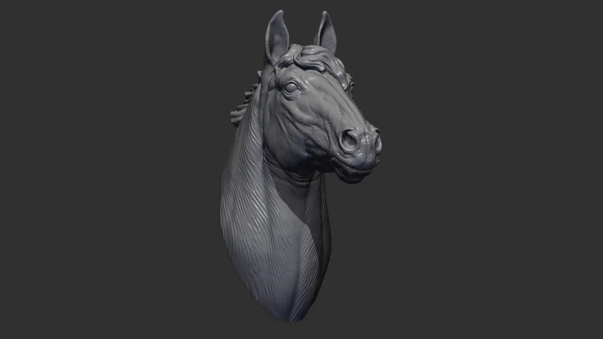 610K STL, OBJ triangulated mesh, Horse bust in parts