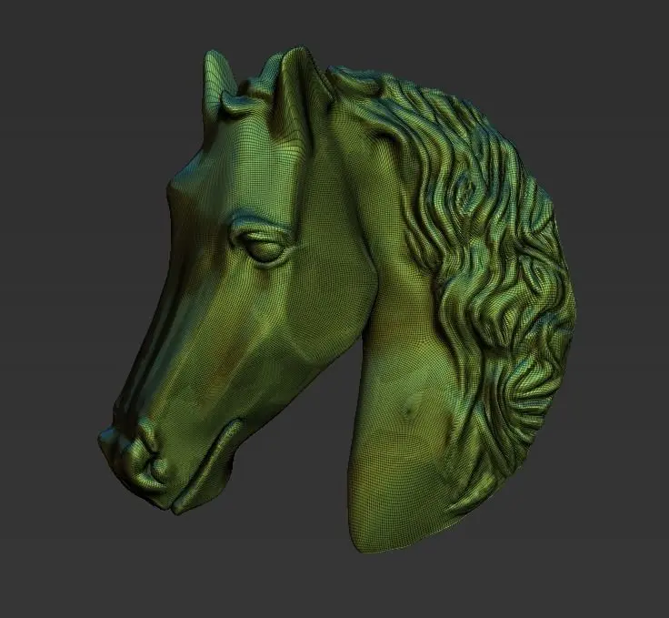 *caballo organico modelado z brush.*El caballo se le quito peso en los poligonos con el objetivo de que tenga facil movimineto.*Contraargolla del dije por separado.*La base esta por separado construida con nubrs.*El herraje de la boca esta construida por separado.
