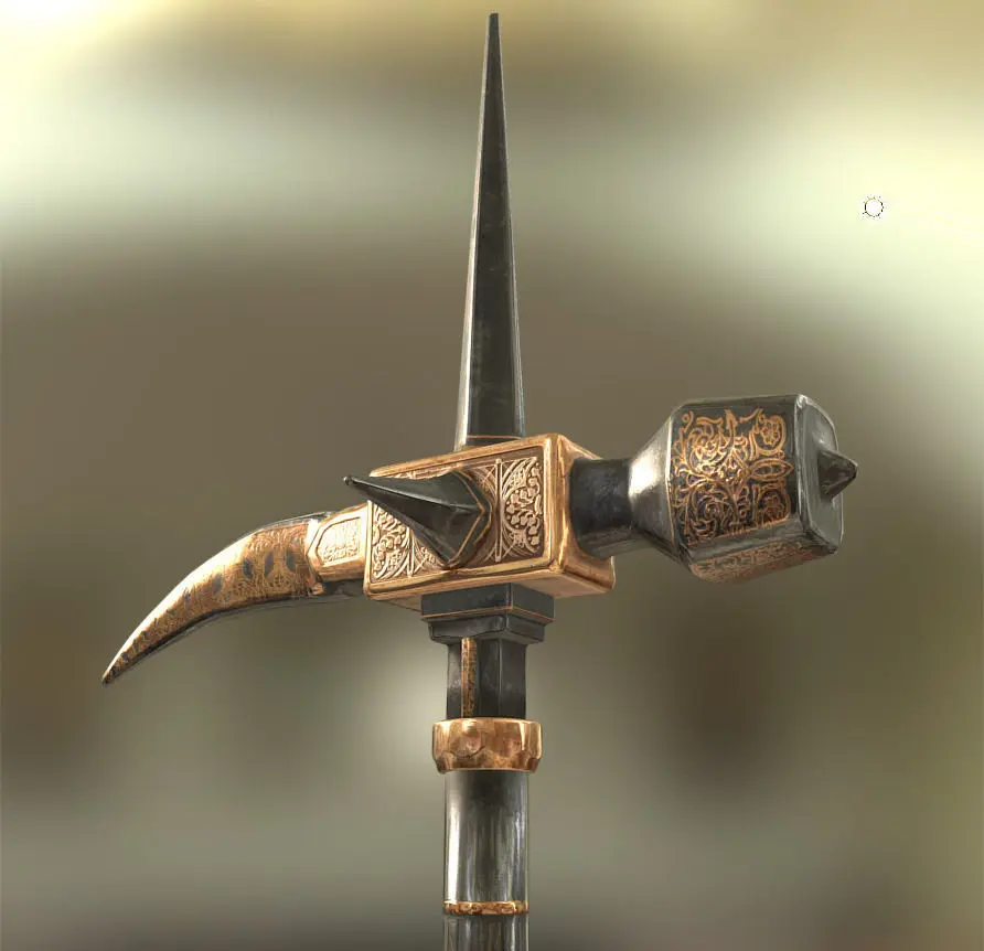 Low poly ornamented medieval weapon with detailed normal map and PBR textures.