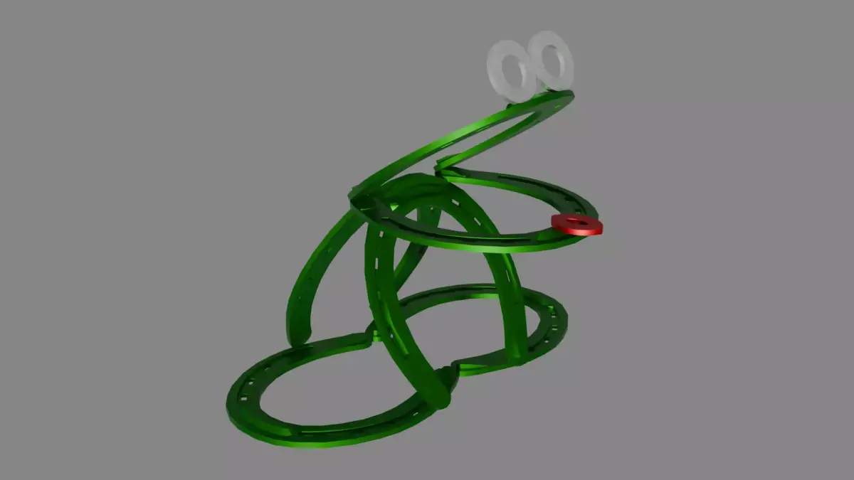 This Horseshoe Frog Yard Art sculpture is built from six full-size horseshoes arranged to form a big, friendly frog with plenty of character. Two horseshoes shape the back and body, while the others create the wide splayed legs and feet that give the frog its playful stance. Three metal washers add the finishing touches—two set high for the frog’s bright white eyes, and the third positioned as a long red tongue playfully sticking out. The frog is painted a lively green that contrasts nicely with the crisp white eyes and bold red tongue. It’s a fun, cheerful piece with a handmade rustic feel, perfect for adding personality to a garden, flower bed, porch, or any outdoor space.