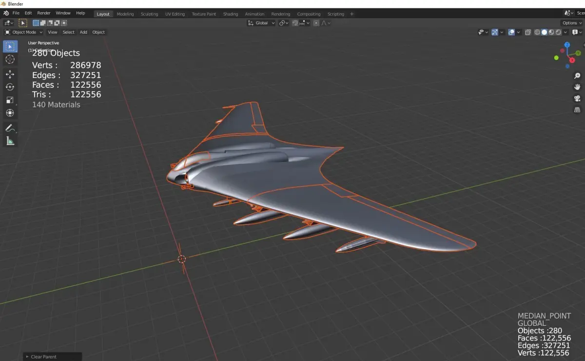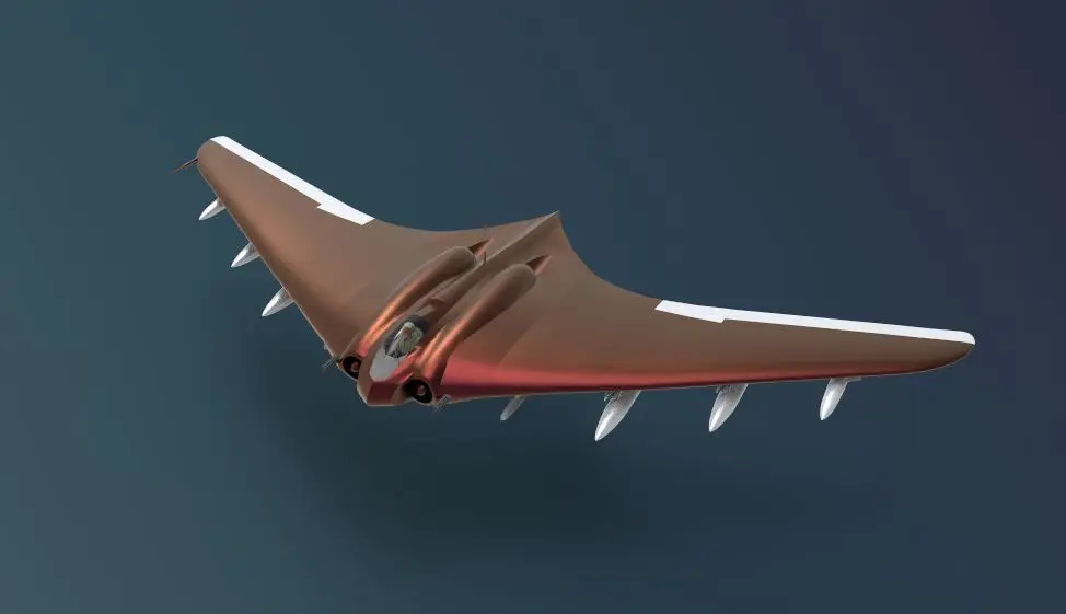 The 3D model of the Horten Ho 229 aircraft captures the futuristic design of this experimental German World War II jet. The aircraft is characterized by its unique flying-wing configuration, lacking a conventional tail and featuring sleek, aerodynamic lines. The model showcases the distinct twin-jet engine arrangement embedded within the wings, demonstrating the advanced aerodynamics and engineering concepts of its era. The outer surface is textured to reflect the materials used in the original design, often a combination of wood and composite materials to maintain lightweight properties. With detailed elements like the cockpit canopy, landing gear, and subtle rivets along the wing structure, the 3D model provides a compelling glimpse into the innovative but unfinished potential of this groundbreaking aircraft.