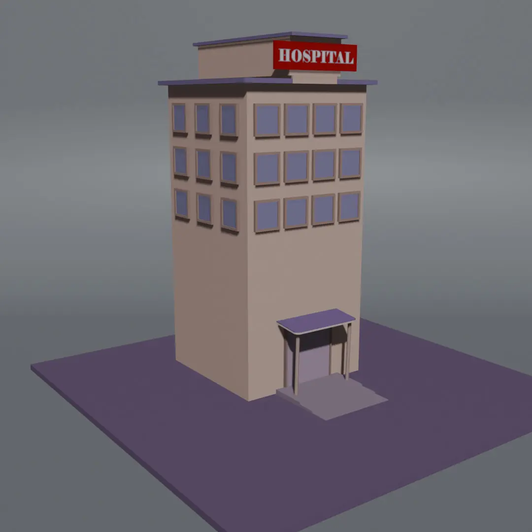 HI EVERYONE!!!!Hopefully you are well. This is a lowpoly 3d carrtonish hospital. This building use in game and small movie animation. hope you love it. These are evee renders.I upload its FBX and obj file here.Thanks for your time!!!!!!!